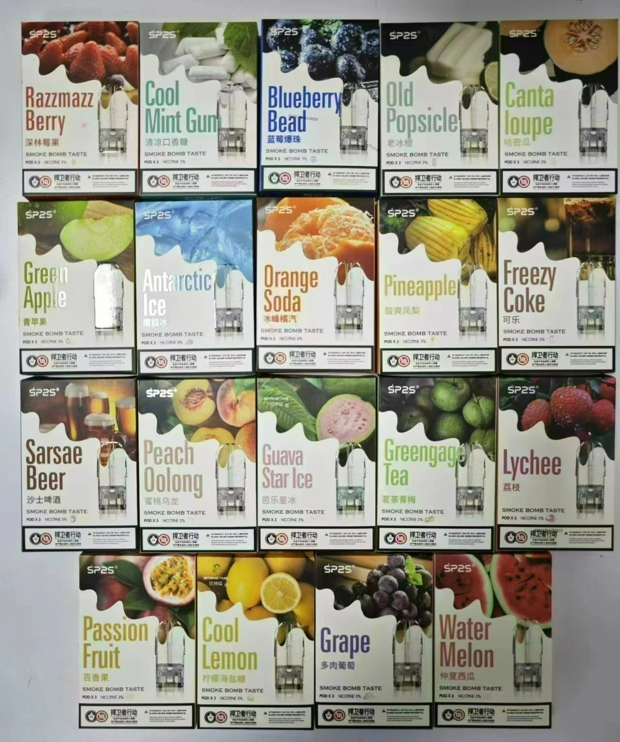 SP2S煙彈現有英文版和中文版2種包裝,口味一樣,只是包裝不同,包裝隨機出貨,不接受指定包裝,望知曉